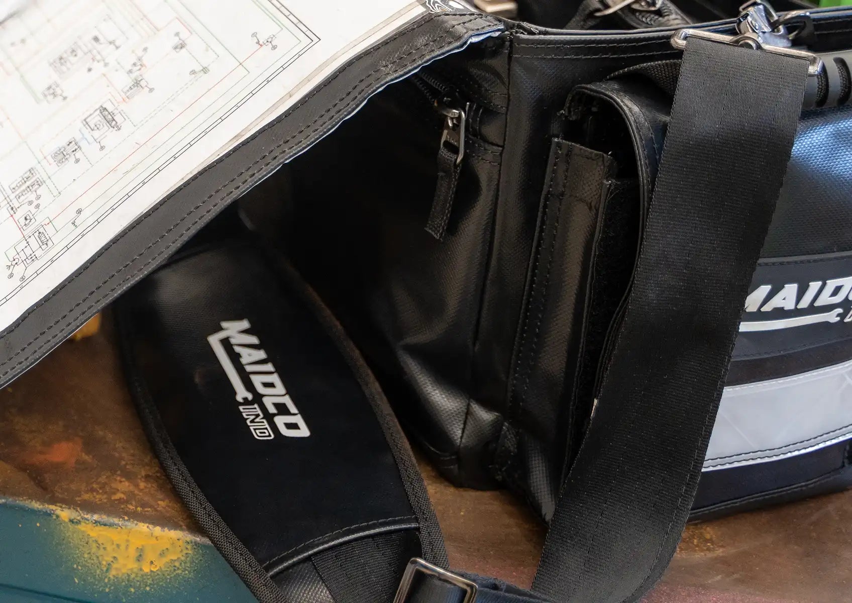 MAIDCO IND tool bags are built from heavy-duty PVC tarpaulin and industrial components designed for harsh work environments. With basic care, they’ll handle years of hard use.